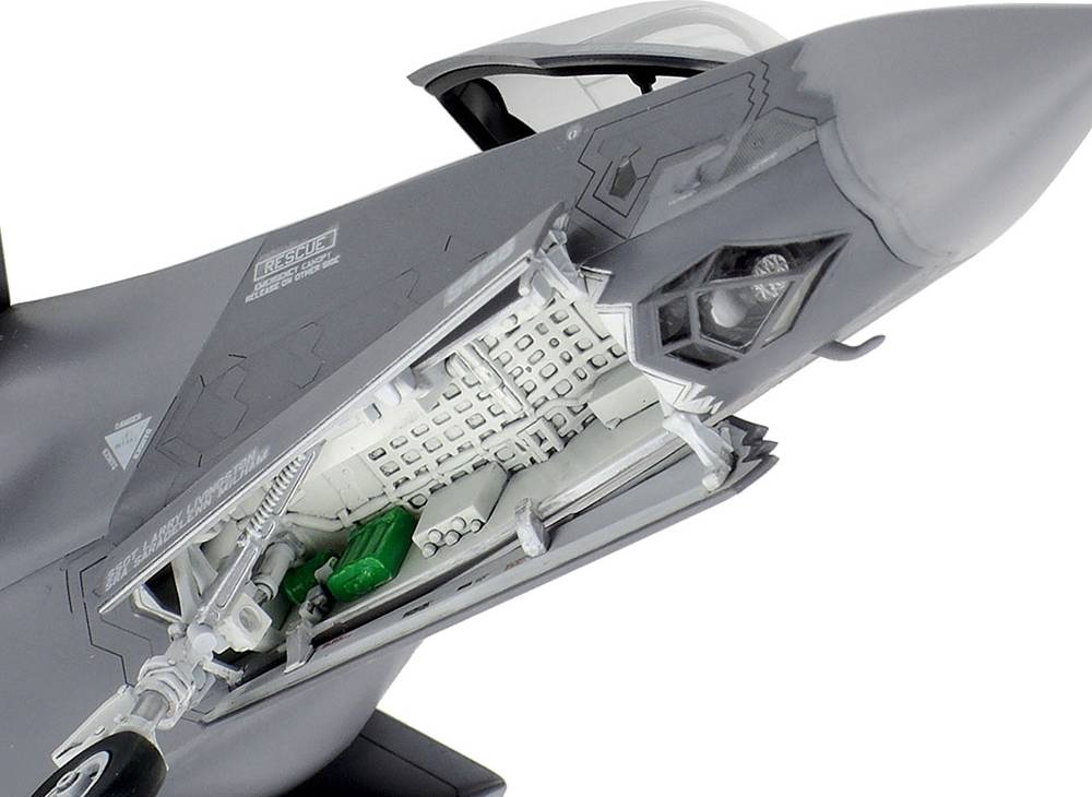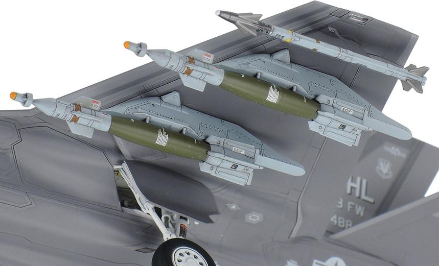 Includes a realistically recreated seated pilot figure with Helmet-Mounted Display (HMD) and ordnance components (AIM-9X