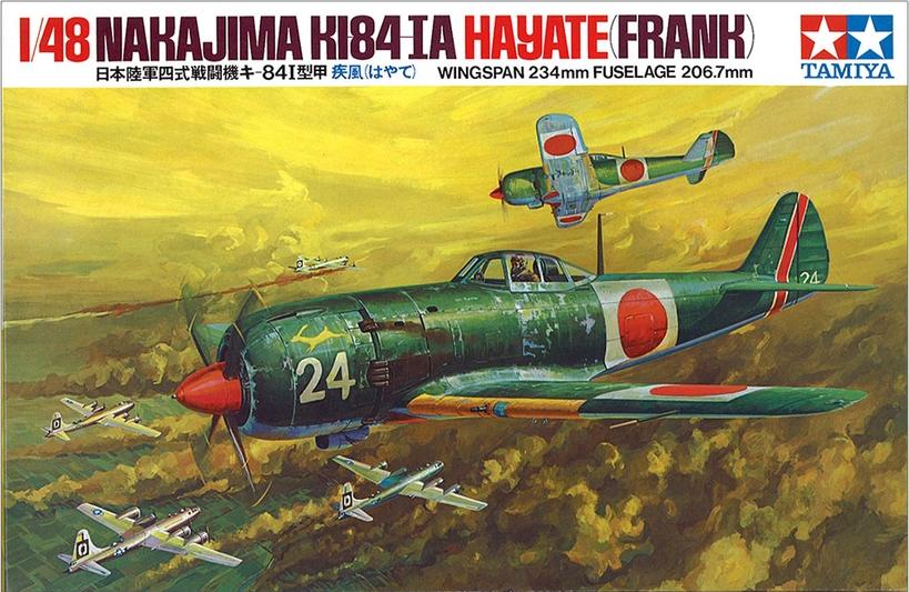 This plastic assembly kit depicts the Nakajima Ki-84 Hayate (Allied reporting name "Frank"). This aircraft entered service in Spring of 1944 and was mainly tasked with defending the Japanese home islands from attacks by B-29s and carrier aircraft. After the war, the U.S. military evaluated the type and deemed it to be the best Japanese fighter of WWII. The Hayate's form is accurately reproduced and the model features delicate surface details. Modelers may choose to assemble the model with deployed or retracted landing gear as well as open or closed canopy. Parts for a drop tank and two pilot figures, as well as four marking options are included.