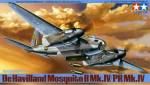 This kit may be assembled into either the B Mk.IV bomber version or the PR Mk.IV photo-reconnaissance version of the multi-role twin-engined de Havilland Mosquito. The distinctive characteristics of these versions, such as the clear nose, canopy bulges, and crew access hatch with ladder have all been accurately reproduced. Parts for the bomber version's 500lb bombs and the reconnaissance version's cameras are also included. To top it off, the kit comes with two pilot figures and three marking options, two for B Mk.IV and one for PR Mk,IV.