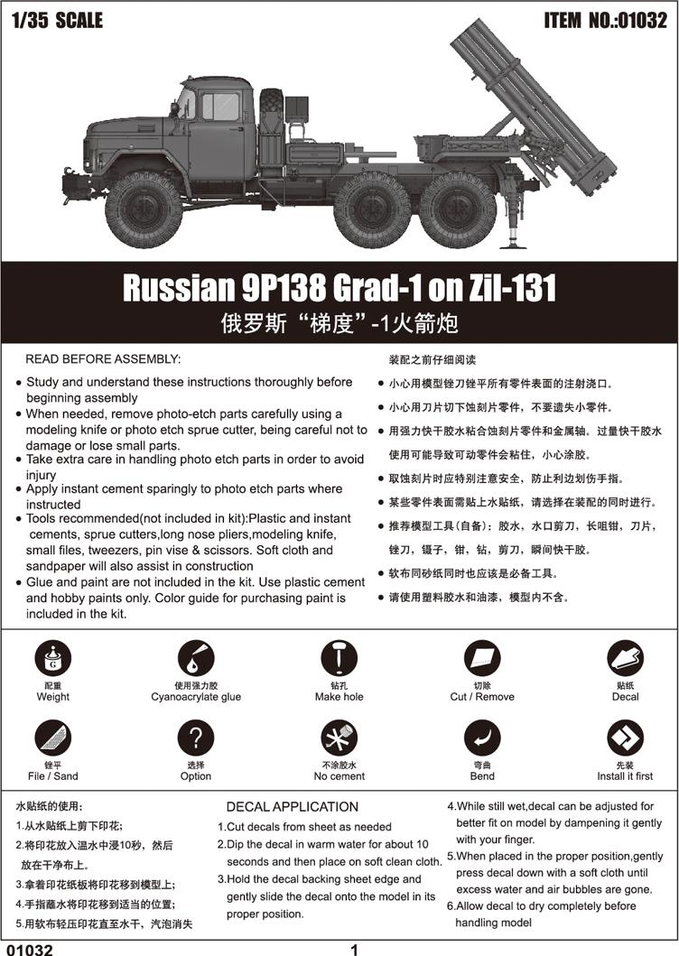 1/35 Russian ZIL131 Military Truck w/9P138 Grad-1