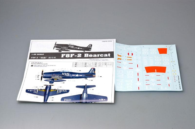 The F8F “Bearcat” was the speediest prop-driven fighter that Grumman ever produced, but it arrived too late to see combat in WWII. It was intended as an interceptor fighter, operating from carriers. In modern vernacular, it might have been called the "Hellcat Lite"; The F8F featured all-metal construction, a cantilever low-wing monoplane design, folding wings for carrier operations, self-sealing fuel tanks, four .50 caliber machine guns and power by Pratt & Whitney R-2800 radial engine. The US Navy order two prototypes, XF8F-1. in November, 1943. First flown nine months later, the Bearcat prototype outperformed its heavier predecessor, notably with a thirty percent better climb rate. Grumman then delivered the first production model F8F-1.in February, 1945, only six months after first flight! The Navy's order totaled 2,033 airplanes, and Grumman contracted with General Motors to build the Bearcat under license, But only a few Bearcats had been delivered to the Navy when the end of the war halted production. Grumman has been build a total of 1,266 Bearcats of all type. Of which 765 F8F-1's 100 F8F-1B'. At least 24 US Navy squadrons flew the Bearcat, some until as late as 1952, after which some were sold to the French Air force for combat operations in Vietnam. Another 129 Bearcats were sold to the Thai Air Force.