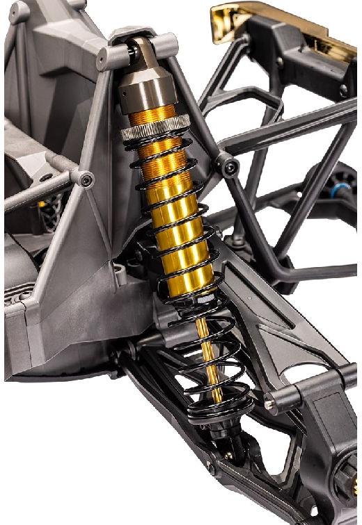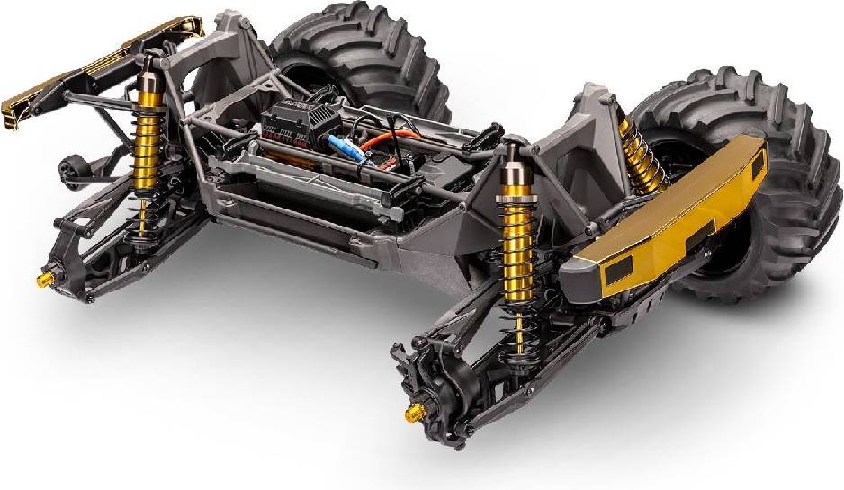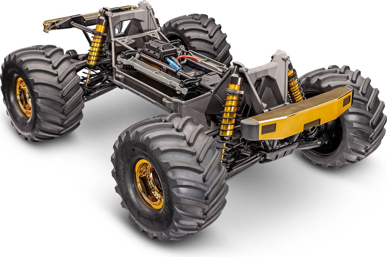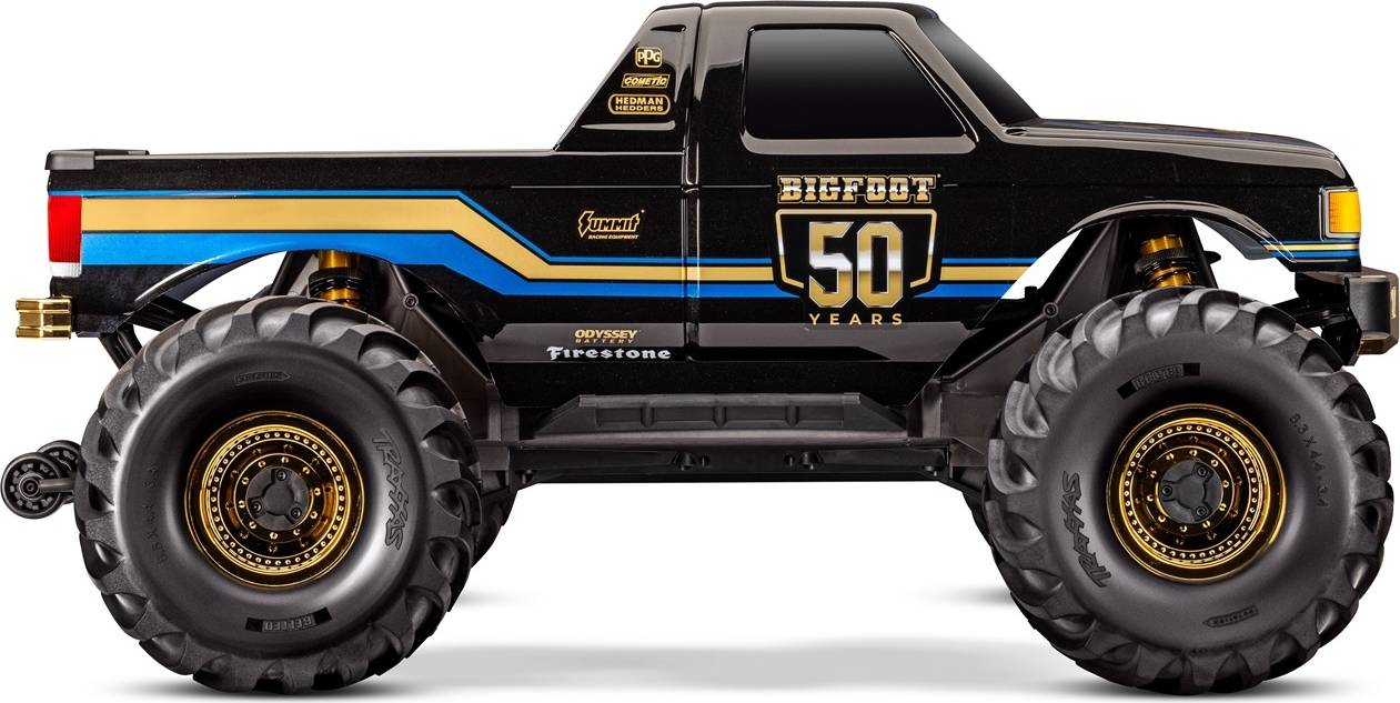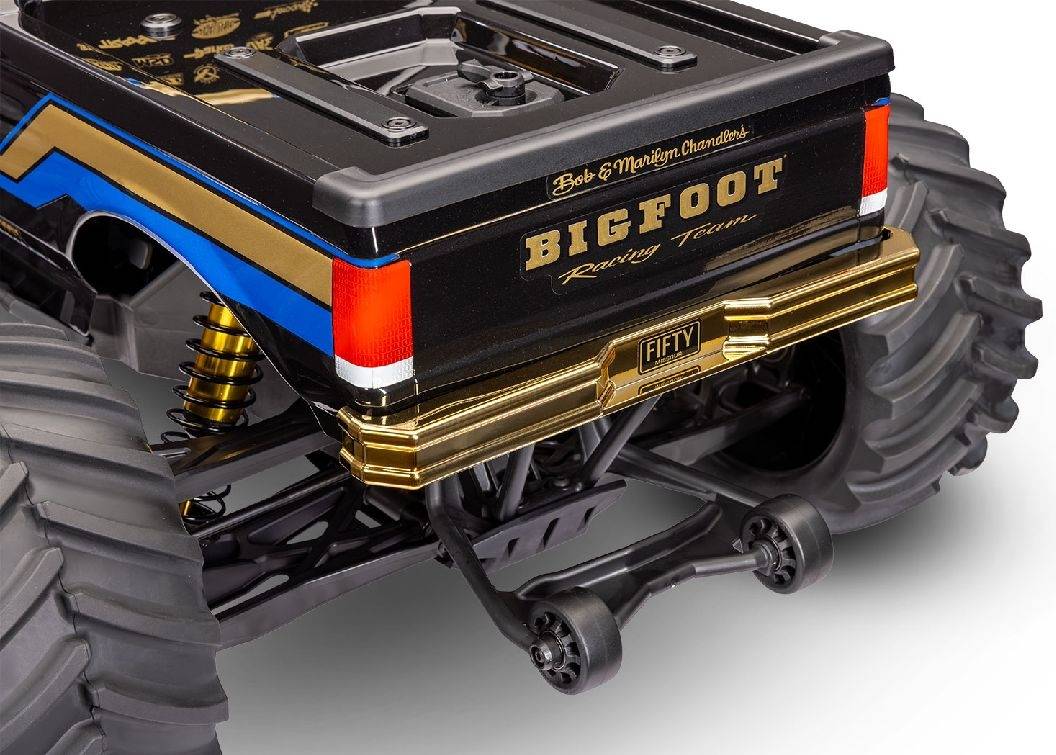 The X-Monster BIGFOOT 50th Commemorative Edition honors the rich history of Bob Chandler’s original monster truck with a unique gold and black clipless body and gold-anodized accessories. Each truck includes laser-etched aluminum number plates on the chassis and body, along with a matching aluminum certificate of authenticity.