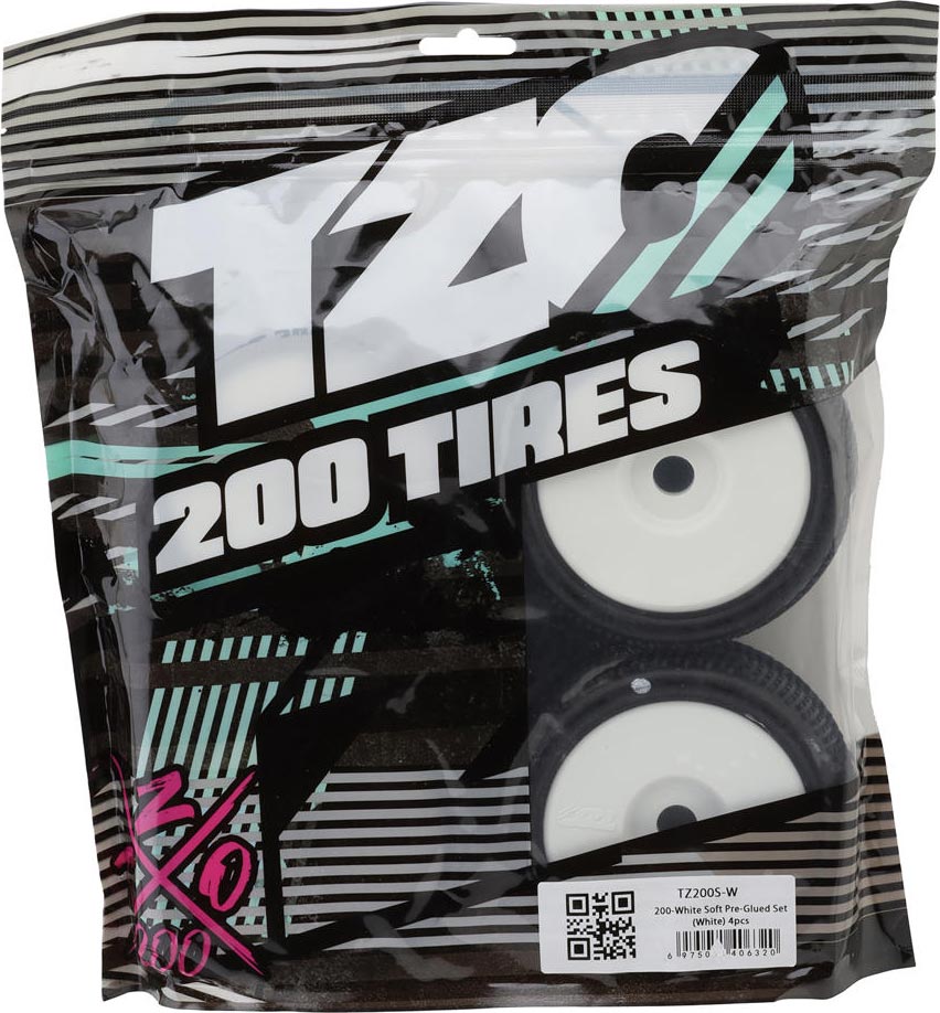 200 1/8 Buggy Pre-Glued Tire Set (White) (4) (Soft)