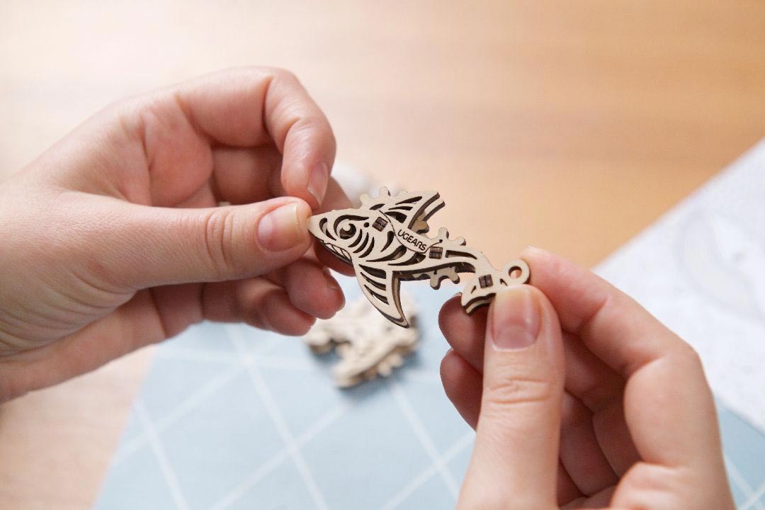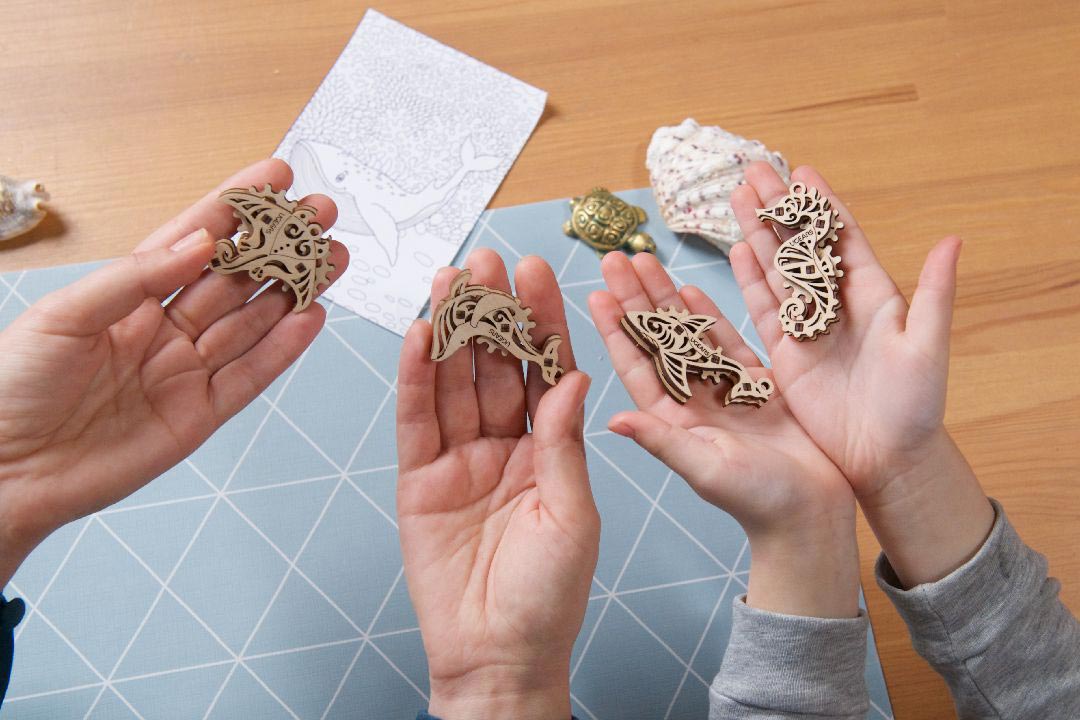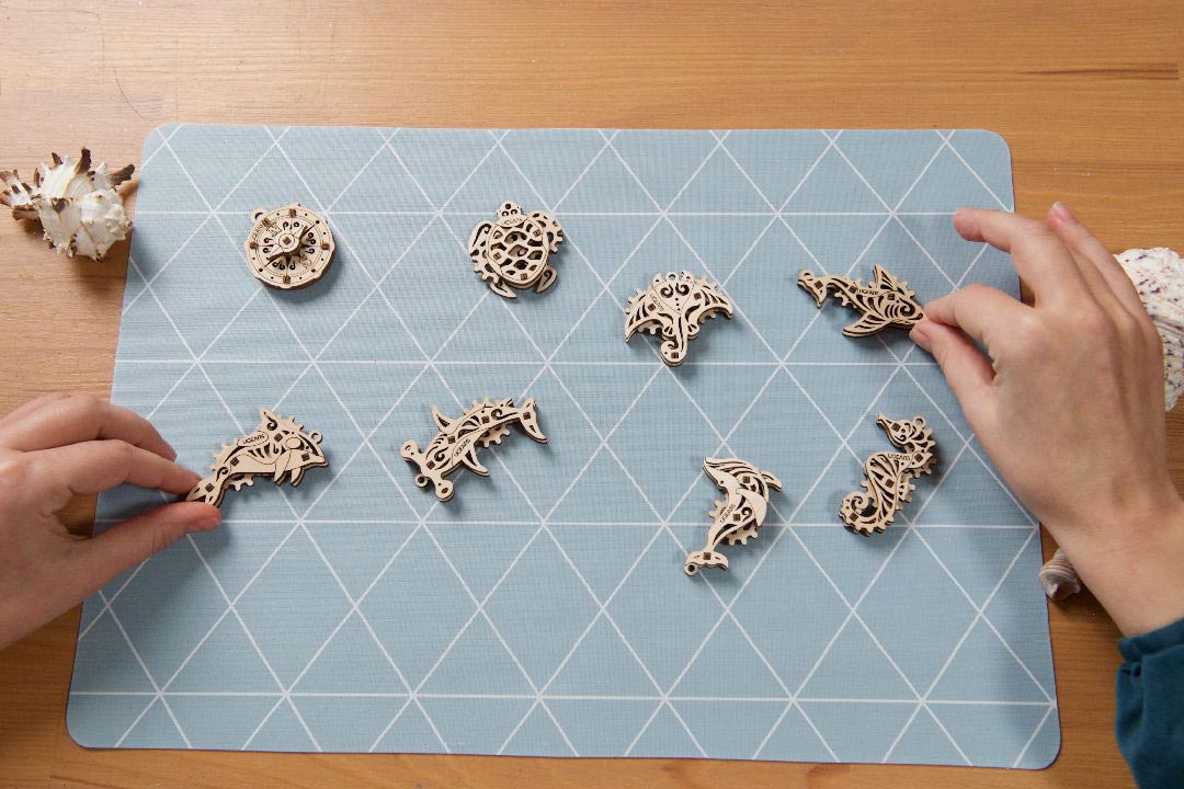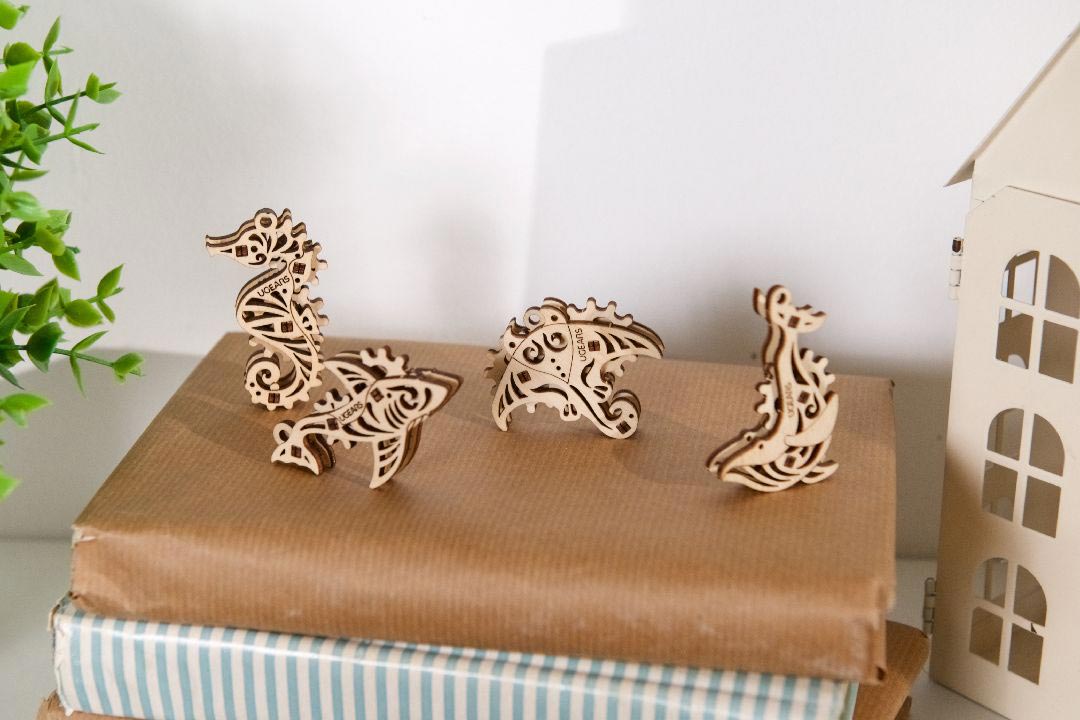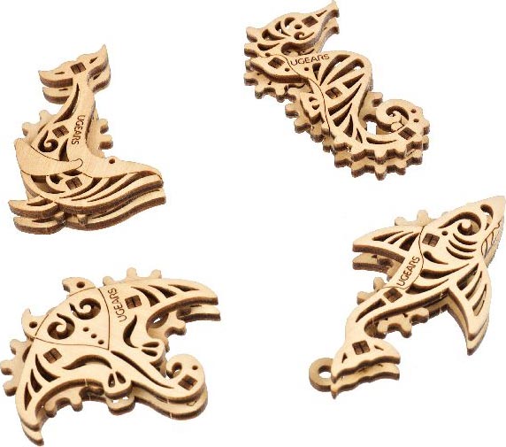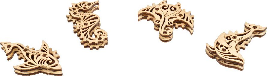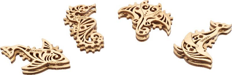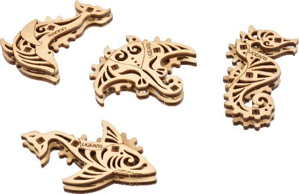The Pacific Ocean series of U-Fidgets from Ugears features four iconic sea creatures. From denizens of the deep to skimmers of the shallows, these beautiful marine life fidgets remind us we must protect the oceans, use less plastic, stop dumping waste, not let our world destroy theirs. The set is comprised of four small wooden figurines you assemble yourself, each with simple mechanical elements: