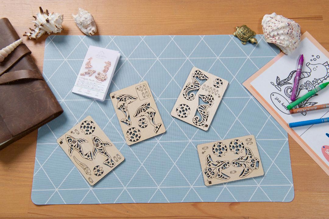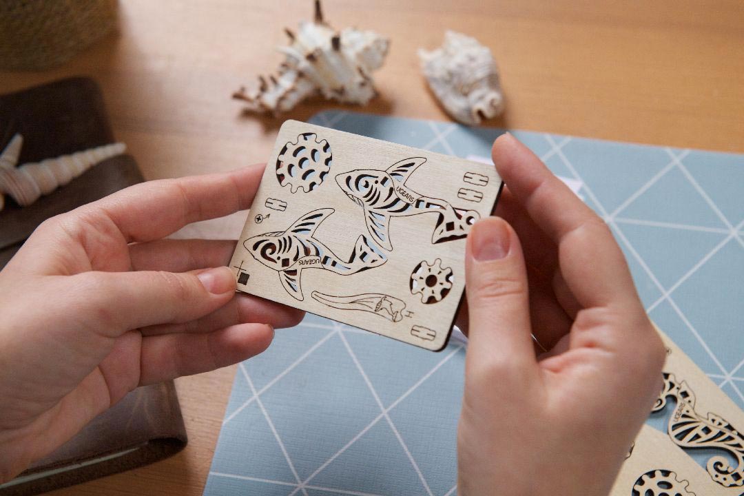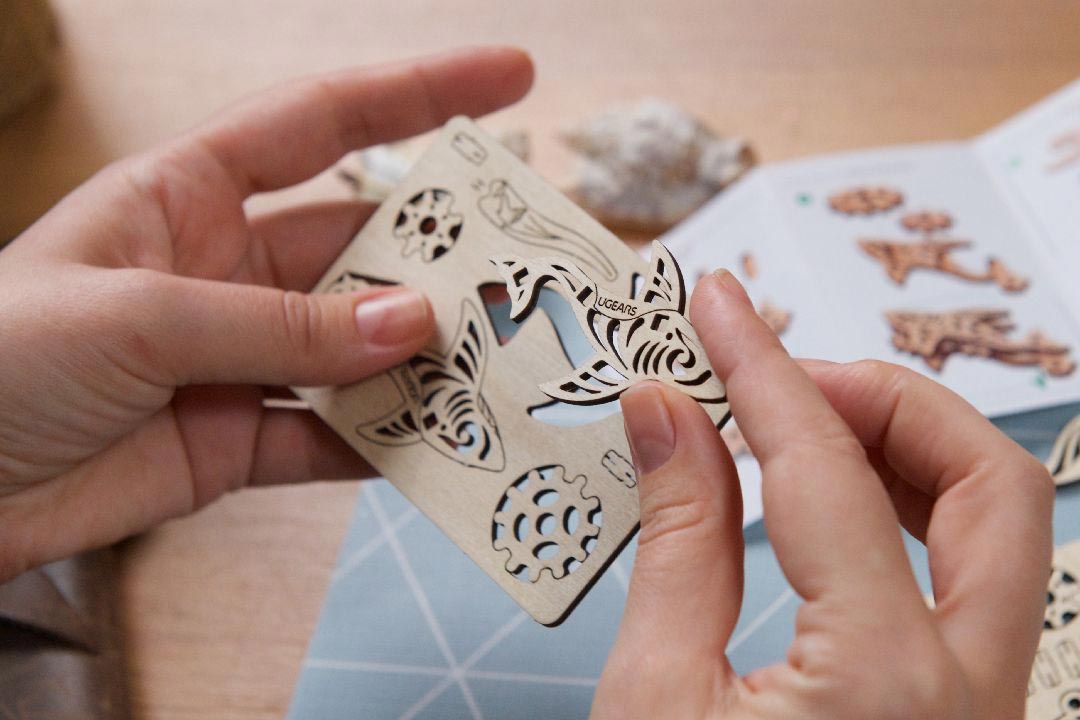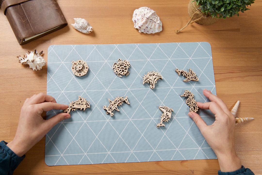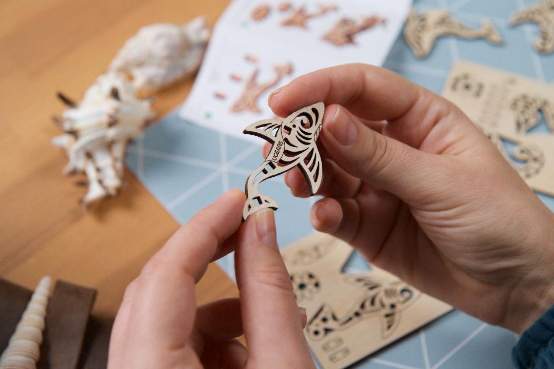 The Pacific Ocean series of U-Fidgets from Ugears features four iconic sea creatures. From denizens of the deep to skimmers of the shallows, these beautiful marine life fidgets remind us we must protect the oceans, use less plastic, stop dumping waste, not let our world destroy theirs. The set is comprised of four small wooden figurines you assemble yourself, each with simple mechanical elements: