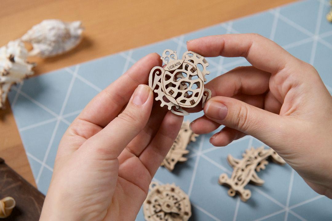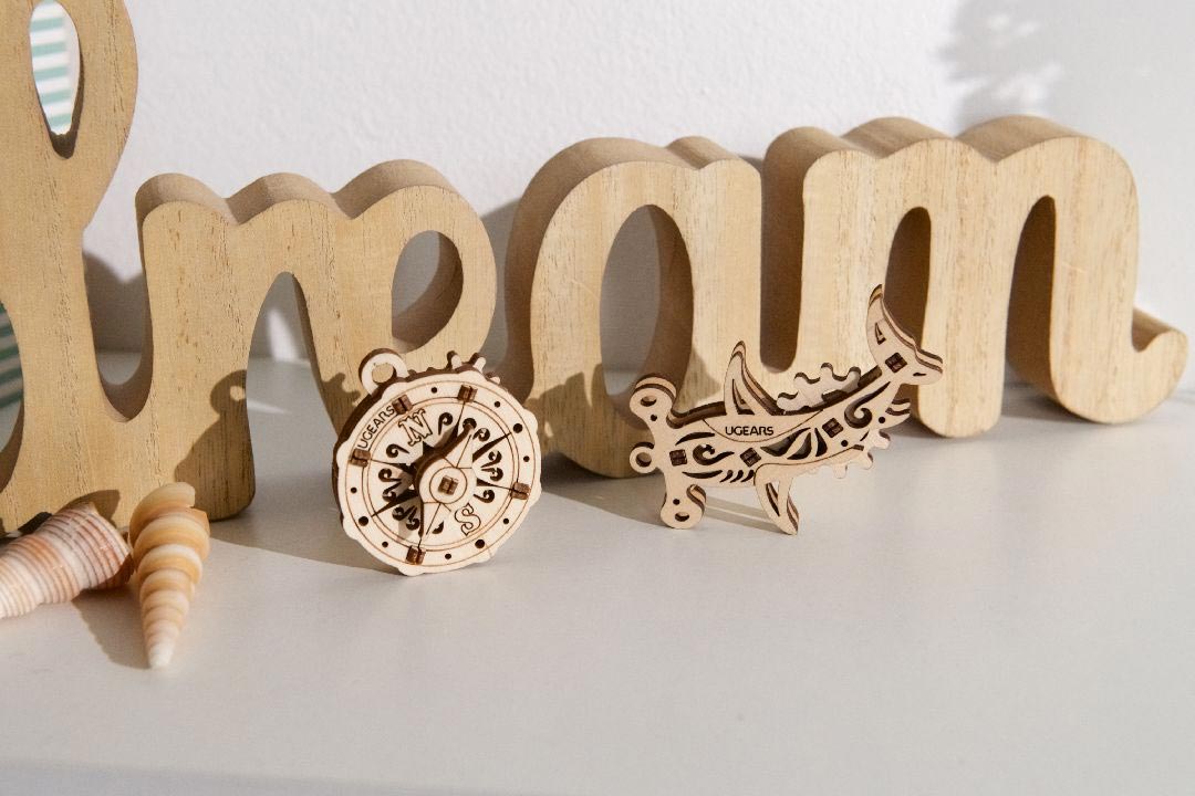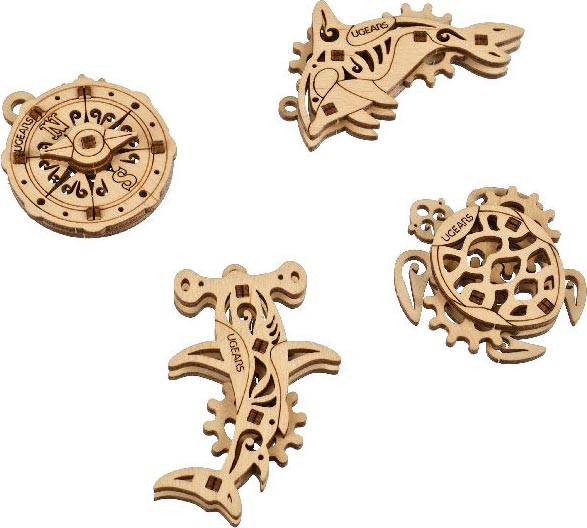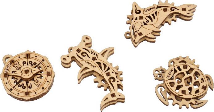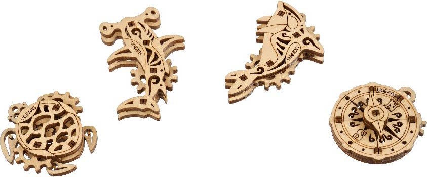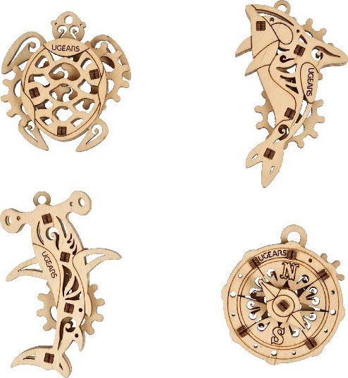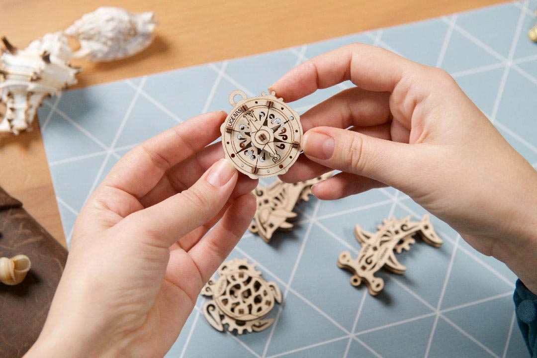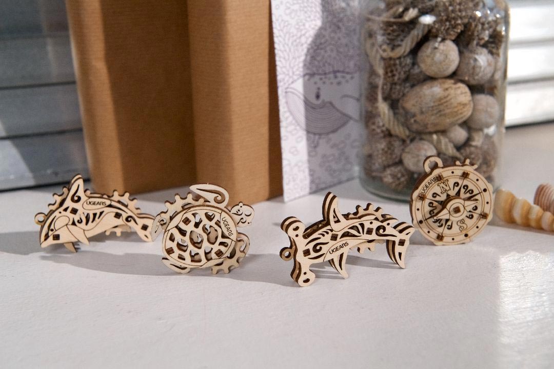 The Atlantic Ocean series of U-Fidgets from Ugears features a compass to guide your voyages and three majestic ocean creatures you might encounter along the way. The set is comprised of four small wooden figurines you assemble yourself, each with simple mechanical elements: