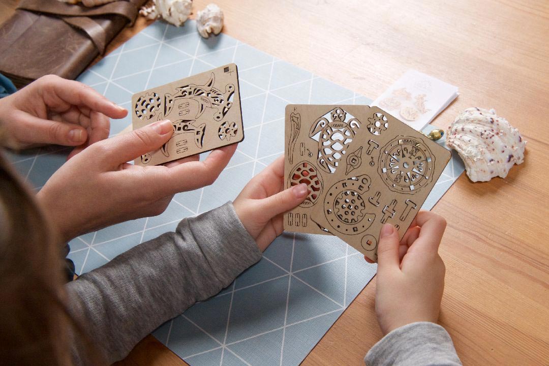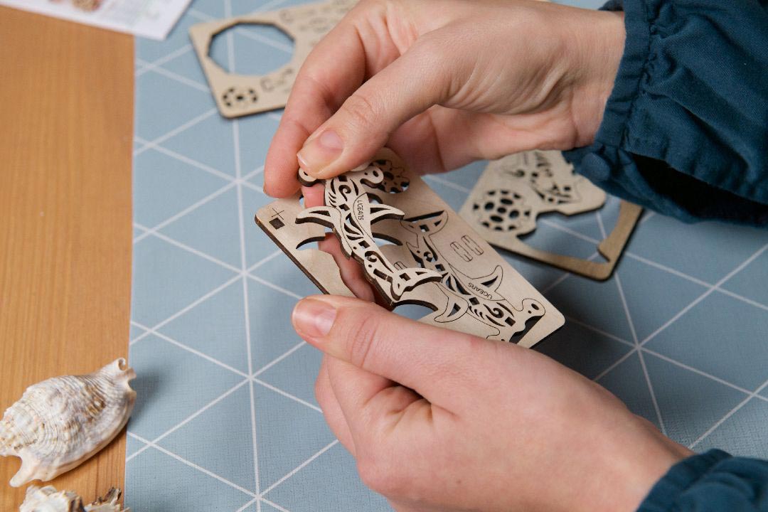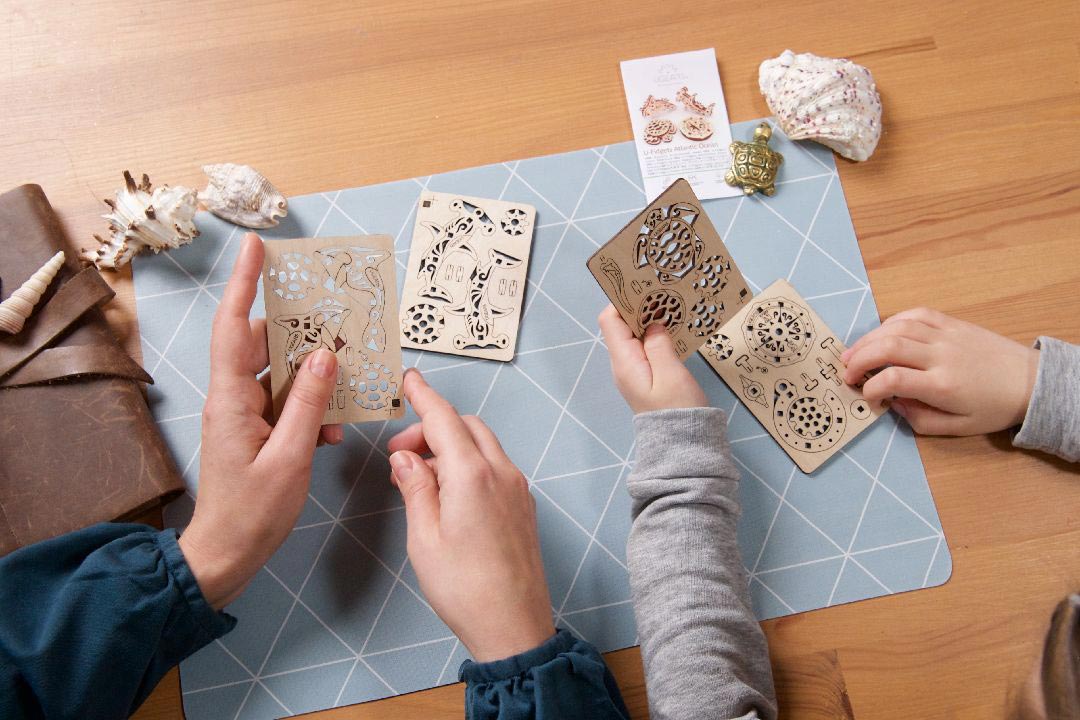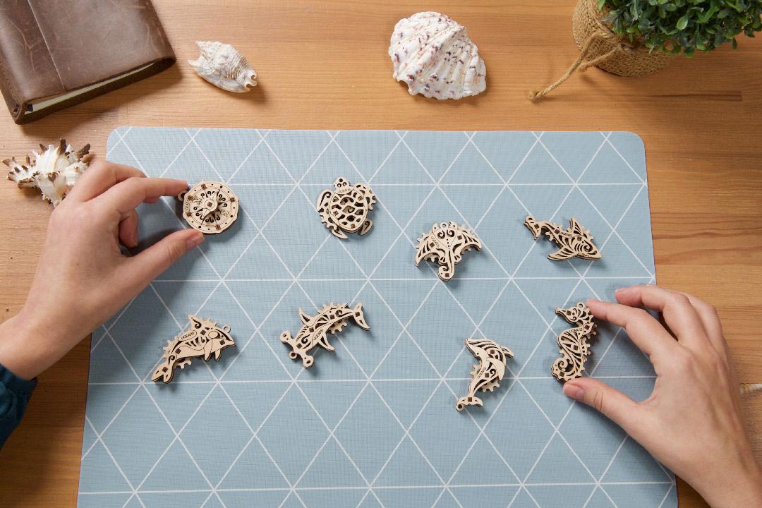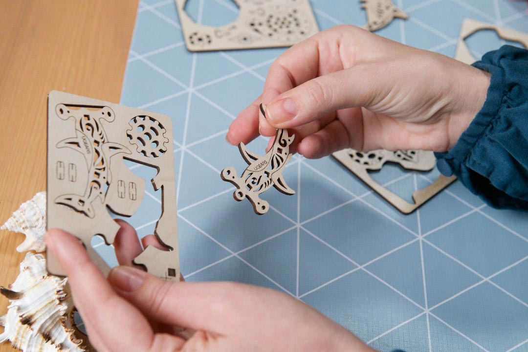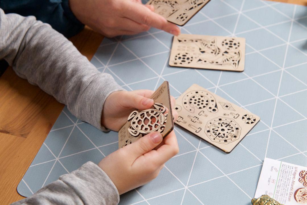 The Atlantic Ocean series of U-Fidgets from Ugears features a compass to guide your voyages and three majestic ocean creatures you might encounter along the way. The set is comprised of four small wooden figurines you assemble yourself, each with simple mechanical elements: