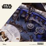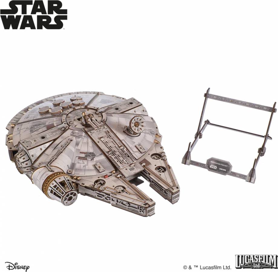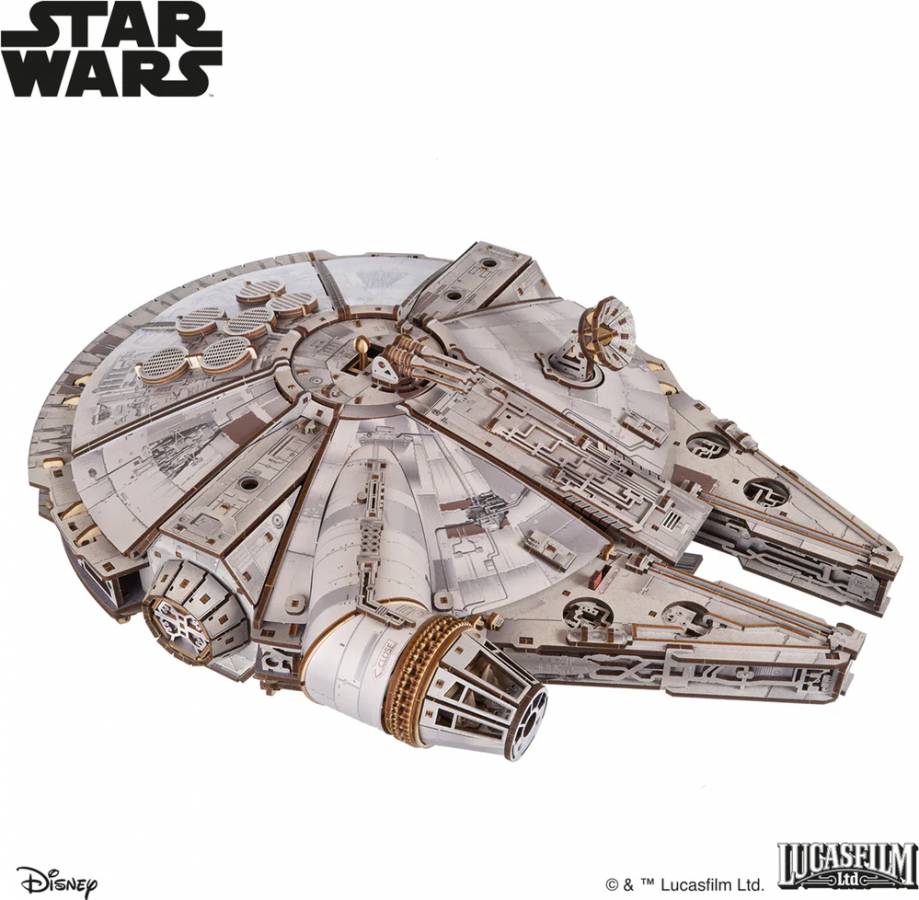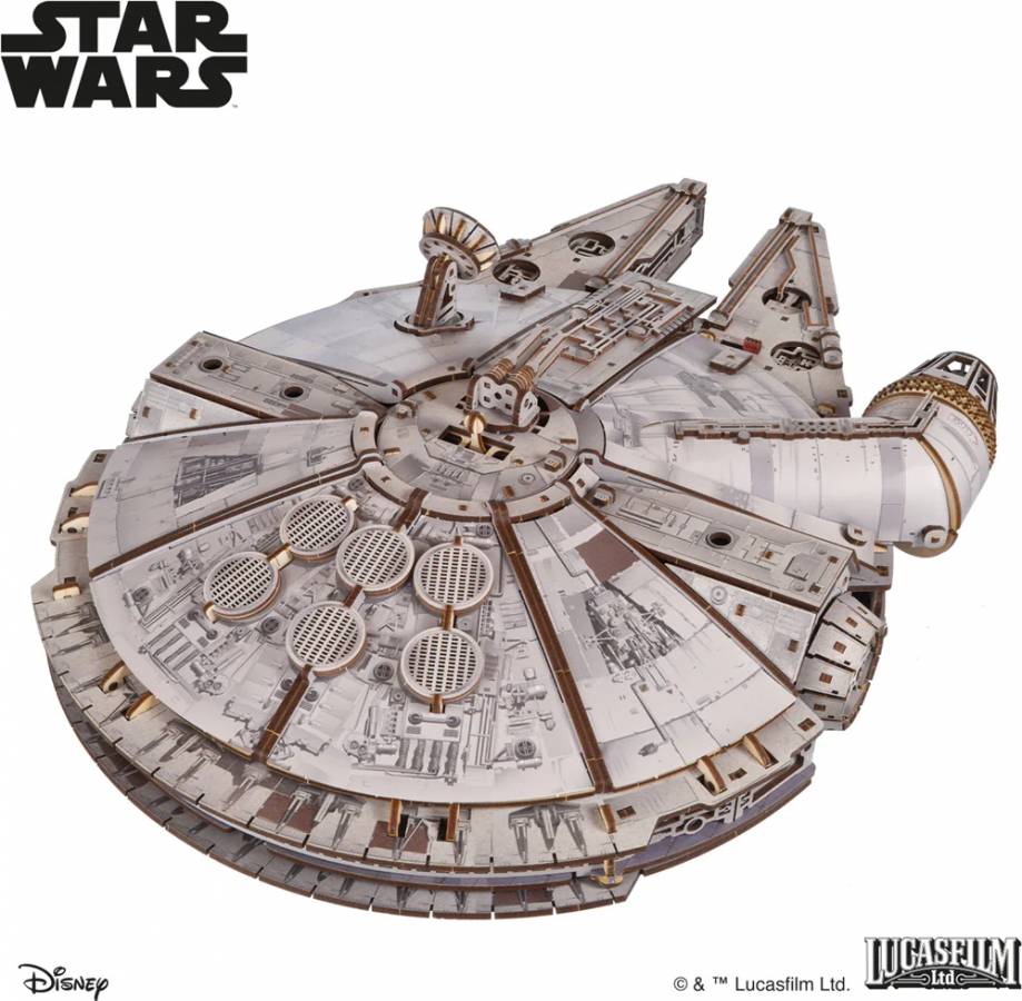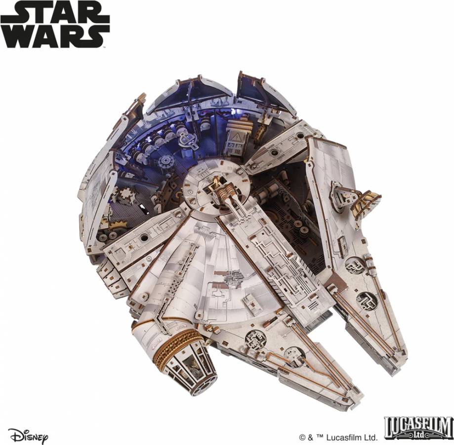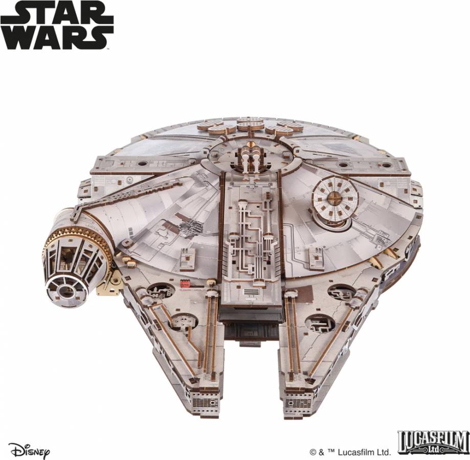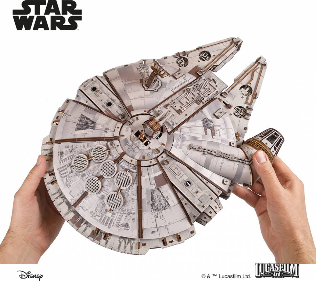 Movable elements include the boarding ramp, cargo bay door, landing gear, gun turrets, rotating 360° antenna, and retractable roof that opens to display the amazing detailed realism of the ship's interior. High density fiberboard and cardboard elements bring added durability and interest. Build and own a piece of cinematic history with this absolute showstopper 3D model of the Millennium Falcon™.