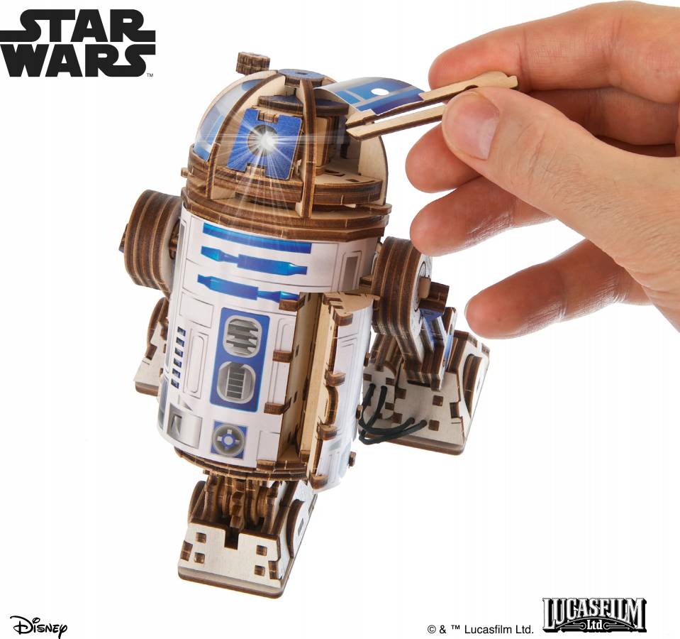 Build your own loyal astromech droid with R2-D2™ from the Star Wars™ collection by Ugears. Small in size but big in personality, this highly detailed and colorized 3D wooden model captures the beloved droid’s unmistakable design.