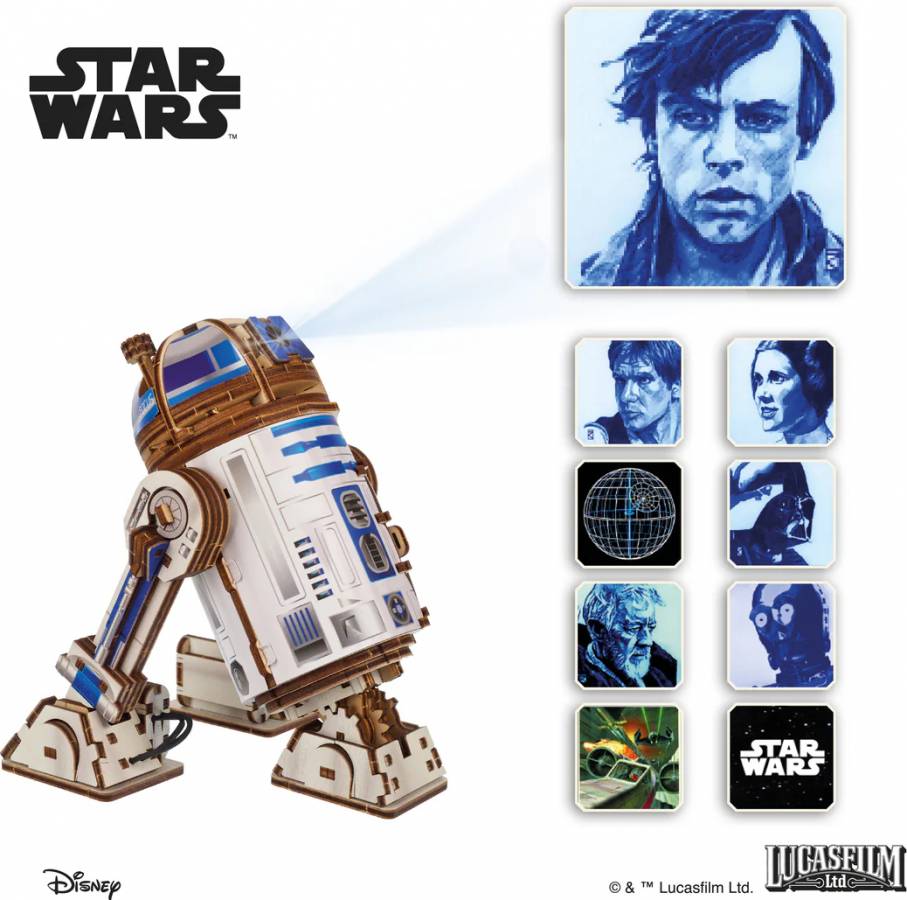 R2-D2 has served legendary heroes like Anakin Skywalker, Padmé Amidala, and Luke Skywalker—and now he’s ready to serve you. Fully equipped with movable legs for two display poses and a functional LED projector that beams real Star Wars images through his “eye,” this model brings galactic charm to any shelf.