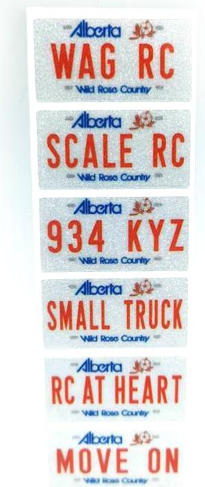 This set includes (6) reflective scale 1/10 sticker plates for ”ALBERTA”