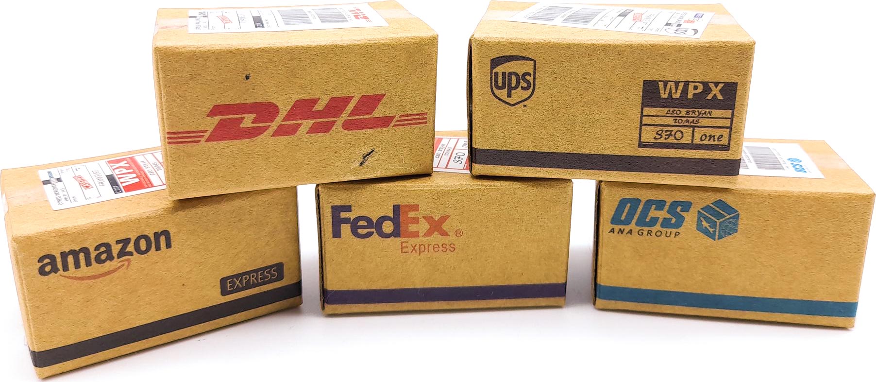(5) Small 1/10 scale cardboard boxes