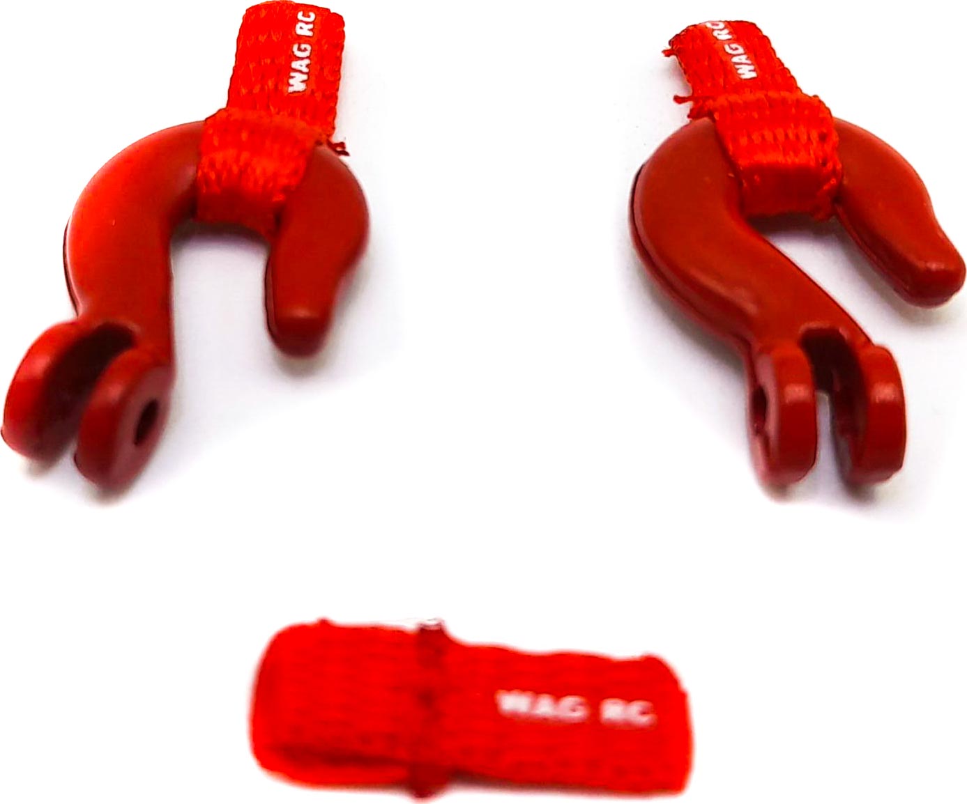 Set of (2) Red Hooks for 1/10 RCs with small WAG RC decorative strap.