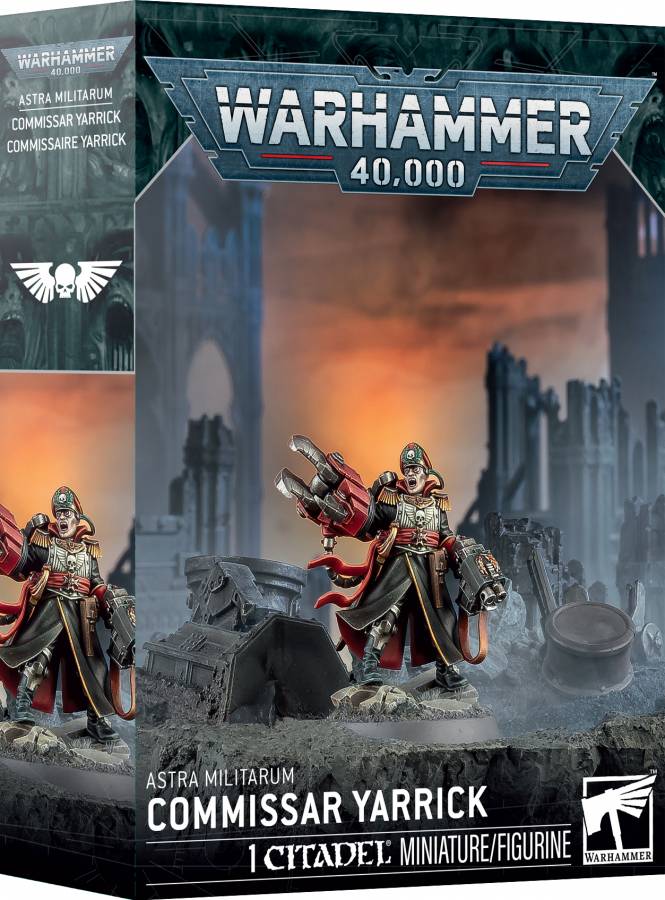 This multipart plastic kit builds Commissar Yarrick, one of the most famous heroes of the Imperium, for your Astra Militarum armies in games of Warhammer 40,000. The fabled Commissar is a paragon of grit and determination, acting as an example to the beleaguered forces defending Armageddon and beyond. This inspirational leader will ensure your force can rip victory from the jaws of defeat, whether you are battling the Orks or any of Humanity’s enemies. The characterful miniature tells Yarrick’s story – the power klaw he tore from the arm of an Ork warboss, the bionic eye that shoots lasers, and the augmetics added by the Space Wolves so he can continue to serve the Emperor.