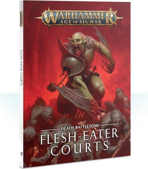 Dans ce battletome de 88 pages sous couverture souple, vous apprendrez l'histoire des Flesh-eater Courts au sein des Royaumes Mortels, de leur origine oubliée en tant que cours aristocratiques à leurs batailles acharnées lors de la Guerre des Âmes, le tout illustré dans un style noir et somptueux. Vous découvrirez comment fonctionne leur étrange société, une ignoble parodie de cour royale ayant pris un tour particulièrement macabre. Le battletome décrit comment les Flesh-eater Courts font la guerre, à travers des chartes de bataillon et l'ensemble des chartes d'unité nécessaires pour aligner une armée de cannibales sur la table de jeu – des rangs serrés et frénétiques des Crypt Ghouls aux monstres colossaux tels que le Royal Zombie Dragon.