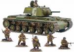 Box contains one plastic KV-1/2 Heavy Tank, a sprue of Soviet Infantry (6 men), decal sheet, and vehicle damage markers.